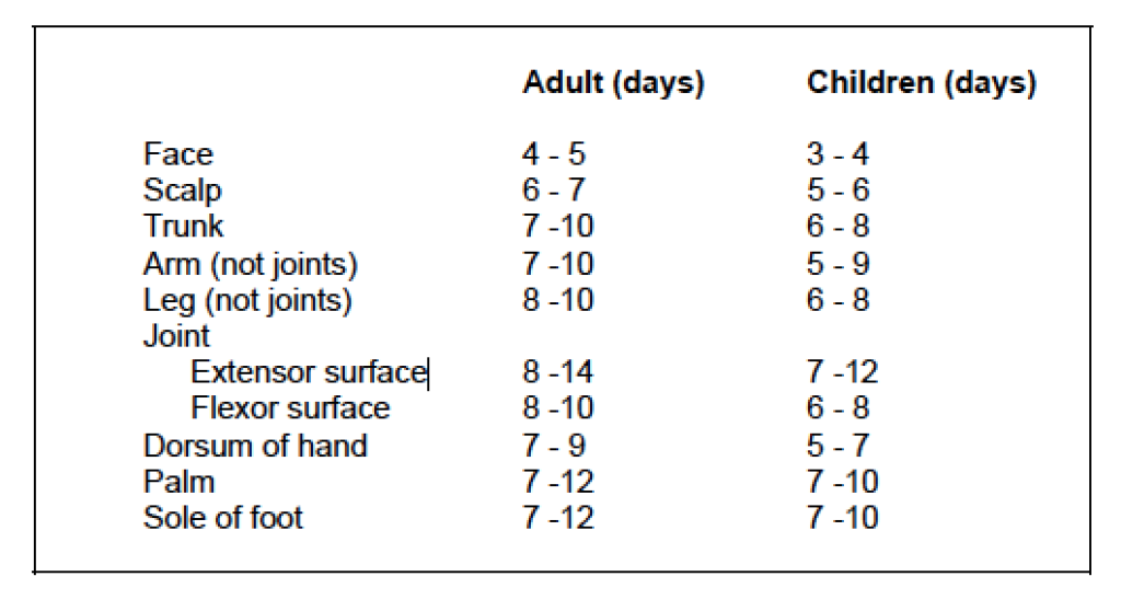 - Monocryl sutures: 7-10 days for facial incisions, 10-14 days for other areas